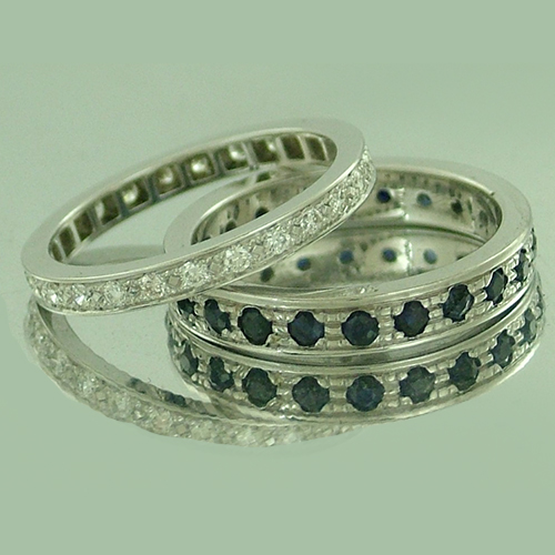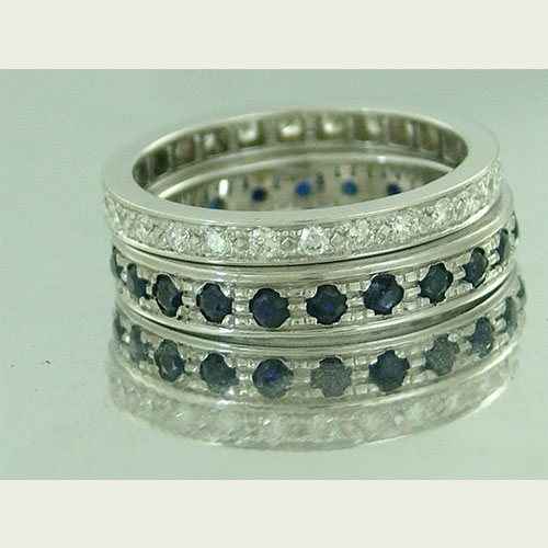 טבעות בזהב עם שיבוצים של יהלומים וספירים כחולים