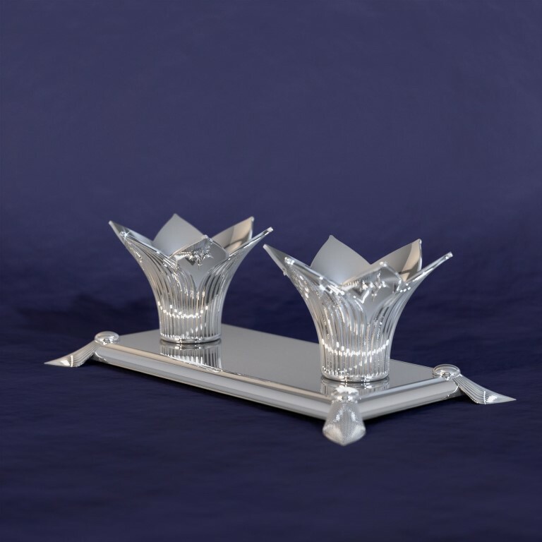 Every Saturday, when you excitedly lit the goblet of oil at the top of the candlestick, you too, will be privileged to witness the silhouette of the Star of David that is created by the White Lily, just as it was perceived by the priests in the Tabernacle of God three thousand years ago. The lavish candlesticks will warm your heart, accompany your family with love and carry the memory to future generations.