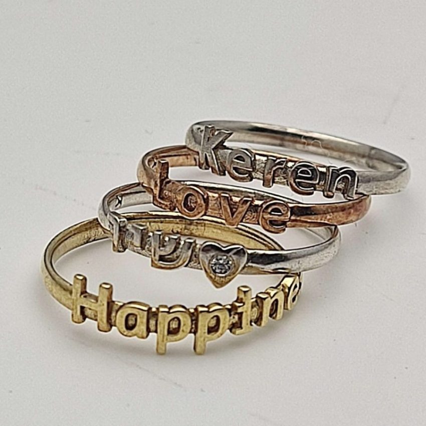 טבעות שמות עדינות ויפות בצבעים שונים של זהב ובעיצוב אישי במיוחד עבור האוהבים שלכם