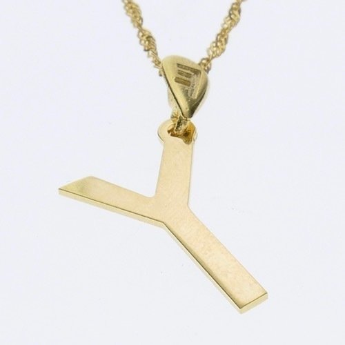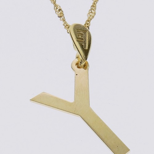 תליון זהב, בגימור מבריק, בצורת אות עברית קדומה: