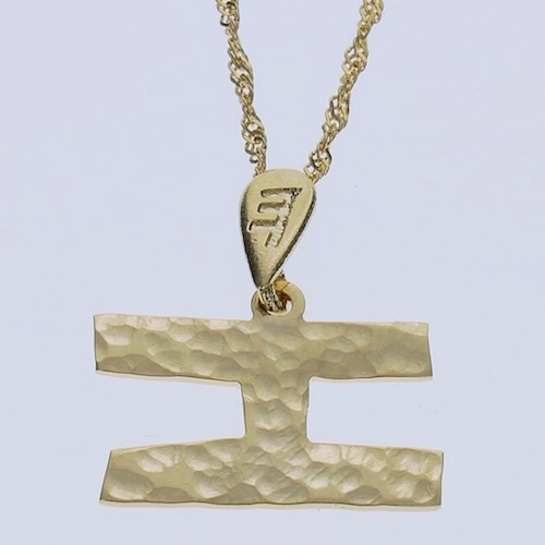 תליון זהב, בגימור רקוע, בצורת אות עברית קדומה: