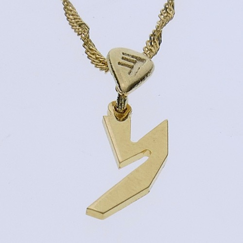 תליון זהב עם גימור מבריק, בצורת אות עברית קדומה: