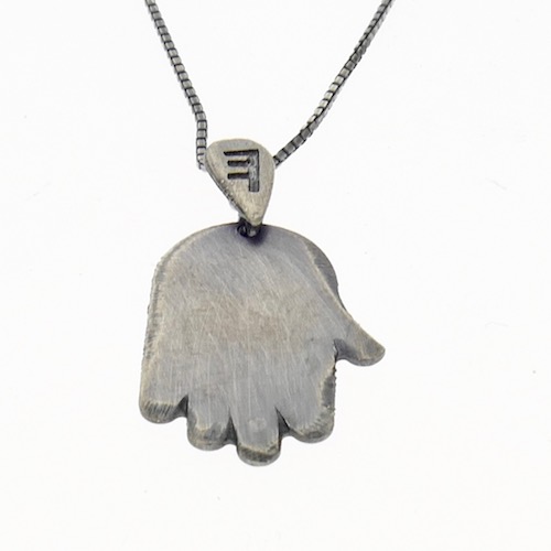 חמסה מכסף בגימור מושחר, מוכן לחריטה אישית או להשאיר חלק.