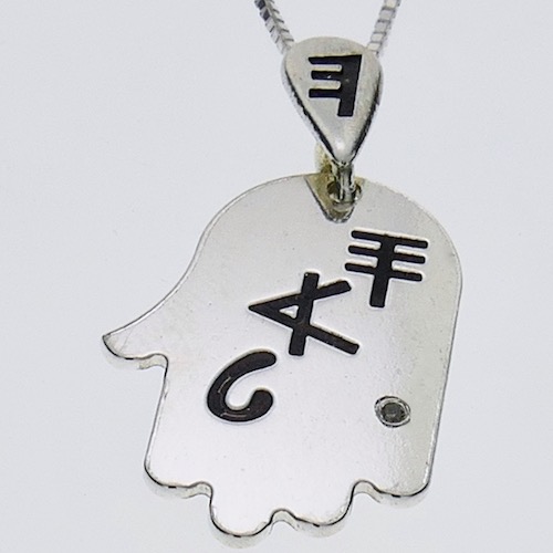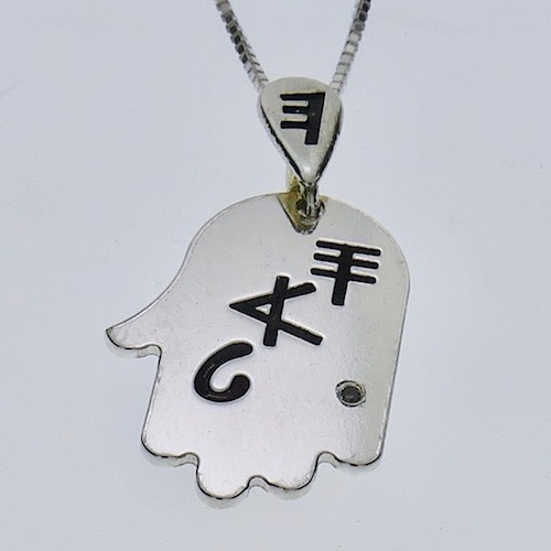 תליון בצורת חמסה עם כיתוב בעברית עתיקה של הצירוף סאל שזה חלק מע"ב שמות מחוכמת הקבלה ובצרוף שהצרופים נוצרו מספר תהילים שכל אות מסמלת לנו מילה ואנו מצרפים כל פעם שלוש אותיות שהם יוצרים לנו את הכוח לשינוי להתחדשות. על התליון למראה אוטנטי ויפה באפשרותכם לבחור עד שלוש אותיות בכל תליון.