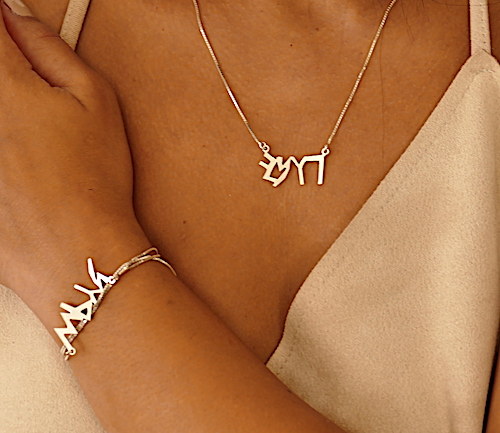 שרשרת תליון שם זהב – עיצוב אישי של אותיות בעברית קדומה